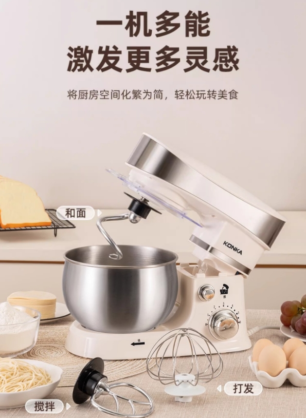 KONKA康佳厨师机小型全自动搅拌烘焙打蛋器多功能家用和面机鲜奶